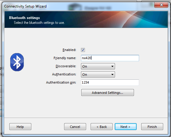 Bluetooth option you get the setup screen for a Bluetooth
