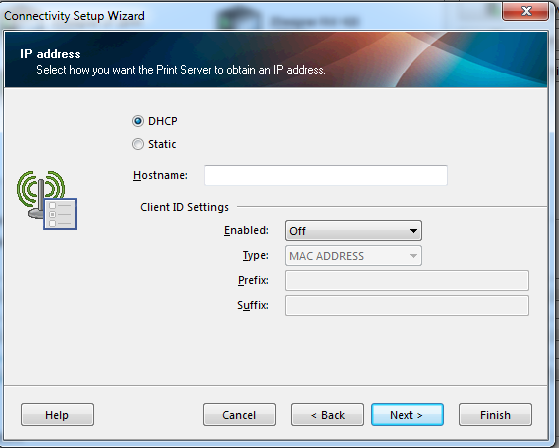 Wireless option you get the setup screen for wireless connections: