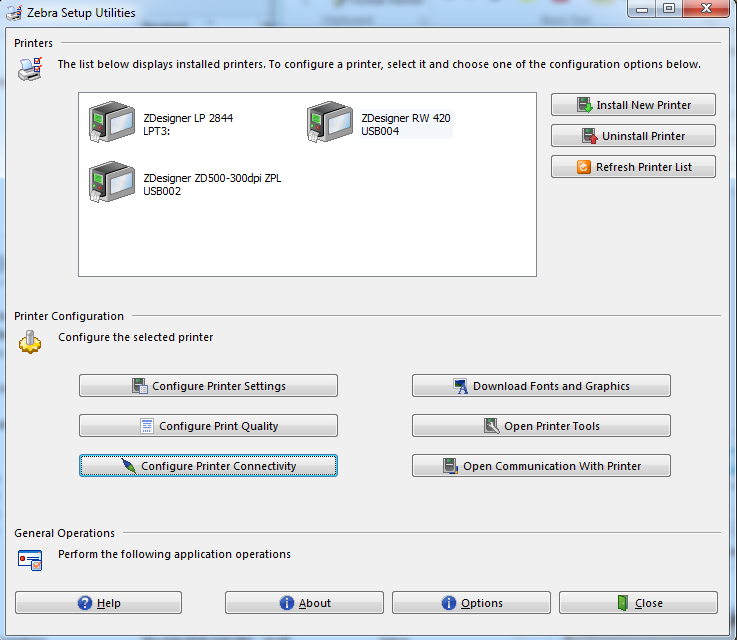Install and run the Zebra setup Utility, available from Zebra.