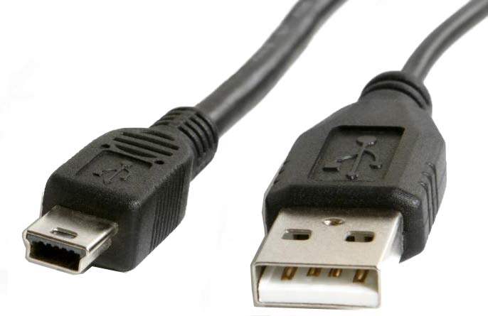 The printer connects to the computer using a Mini USB cable that