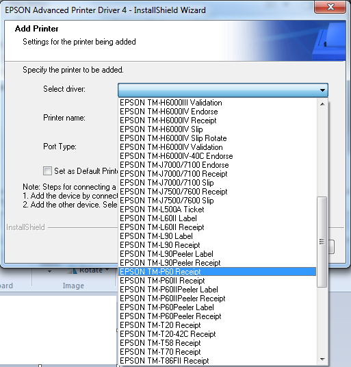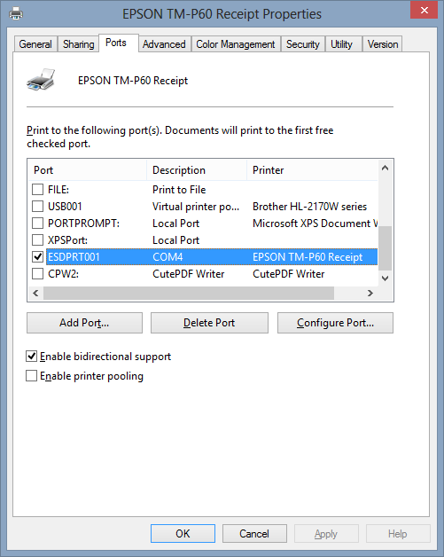 Printer Properties tab in the TM-P60 Printer in the Printers