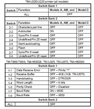 TM-U200/U220 (types D, B, A, and AM), TM-T88II/T88III, TM-H5000II, TM-U325,