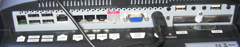 The ION TPS terminal features multiple serial ports with R45 connections. The adapter cable converts the RJ-45 serial connection to DB-9 connection. Plug the adapter cable into the COM1 port if available. Plug the printer cable into the adapter cable. then plug the printer cable into the back of the printer..