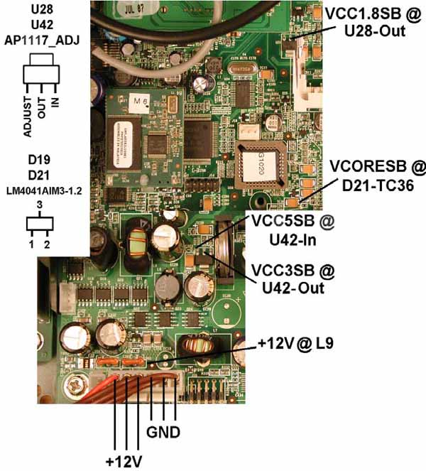 2. If +12V is available, check VCC5SB at the (IN)put pin of