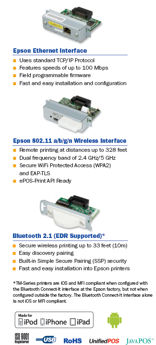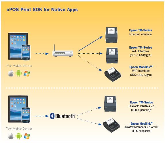 printers. Epson offer a family of printers for iOS, Android and Windows. |