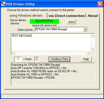 Will test auto cutter, cash drawer kick-out and other POS specific