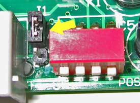 Arrow shows jumper J1 set on pins 1-2; pin 3 is open below