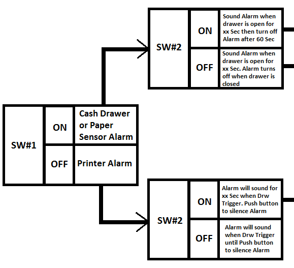 Options for Print Alarm and Cash Drawer Alarm as determined by DIP