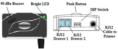 RJ12 of receipt printer cash drawer port. NO drawer needed, External Push Button