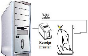 the printer trigger. Cash drawer must have an RJ12 cable with a drawer normally