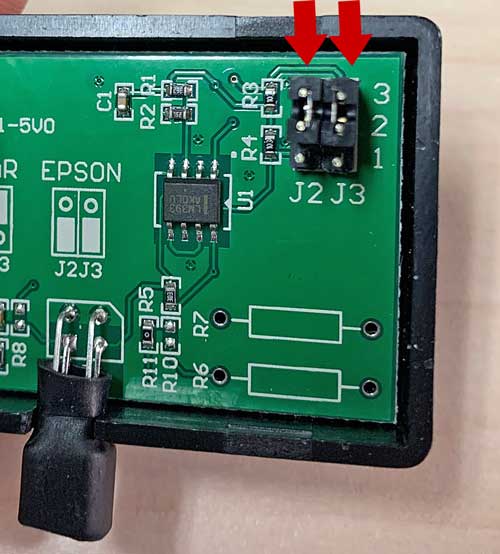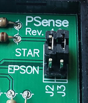 This shows J2 + J3 jumpers down in the default (Epson) position