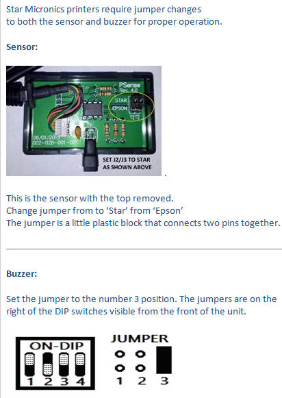 and Jumper Settings of Buzzer with Sensor for Star Micronics