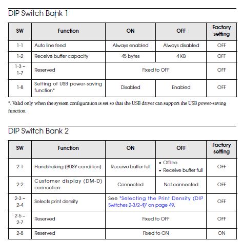 • Receipt print density