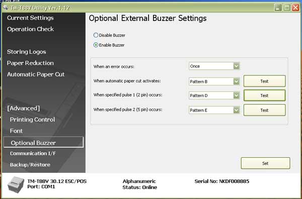 to buzz when ever something is printed (after the cut), when cash drawer 1 is